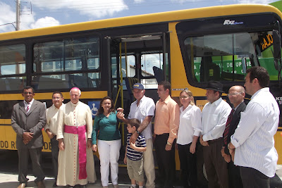 Na sexta feira a manhã iniciou com uma celebração na Igreja Matriz seguida de um café comunitário. Logo após o nosso Bispo Diocesano Visitou a Prefeitura Municipal, participou da solenidade de entrega de um ônibus escolar e visitou o Centro de Convenções. Veja algumas fotos dos momentos: